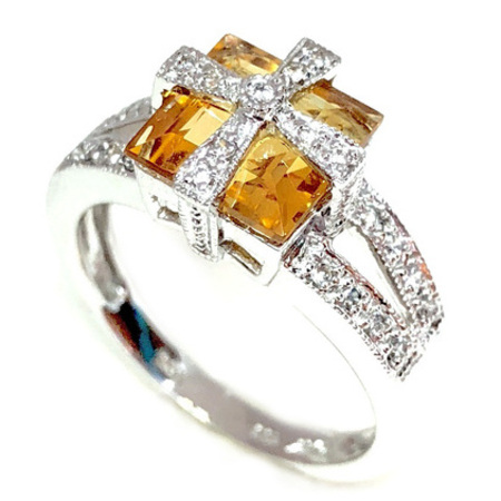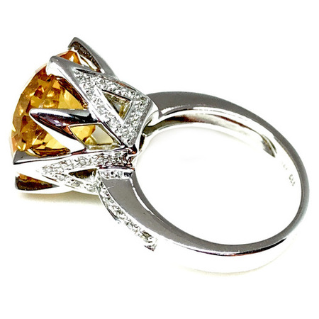 Elegant Design Diamond Ring 14K White Gold , 9.00GR. Ring Size is 6.75 , Width In The Middle is 15MM & Sides 3MM , 50 Diamonds 0.17CT & Yellow Center Stone Is 1CT 7.35CT , Diamonds Clarity SI1 & It is H Color