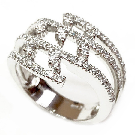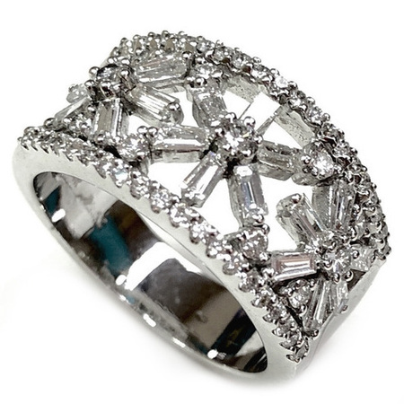 Elegant Design Diamond Ring 14K White Gold , 4.30GR. Ring Size is 6.50 , Width is 5MM , 99 Diamonds 1.00CT , Diamonds Clarity SI1 &It is H Color