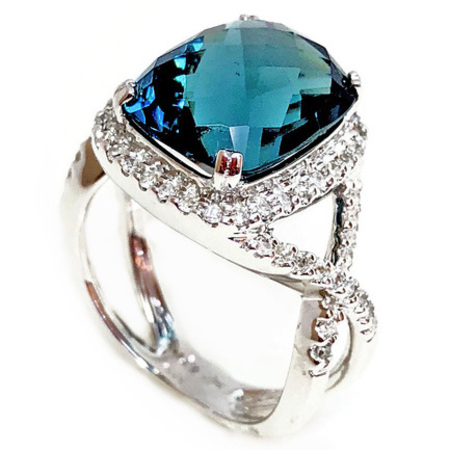 Elegant Design Diamond Ring 14K White Gold , 3.50GR. Ring Size is 6.75 , Width is In The Middle 8MM & Sides 1.5MM , Diamonds Are 28D 0.11CT , Blue Center Stone 4SA 0.45CT , Diamonds Clarity SI1 &It is H Color.