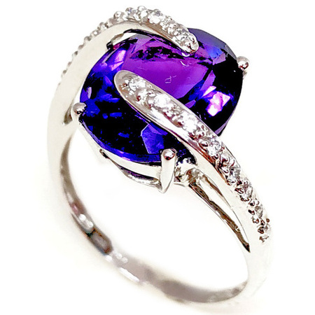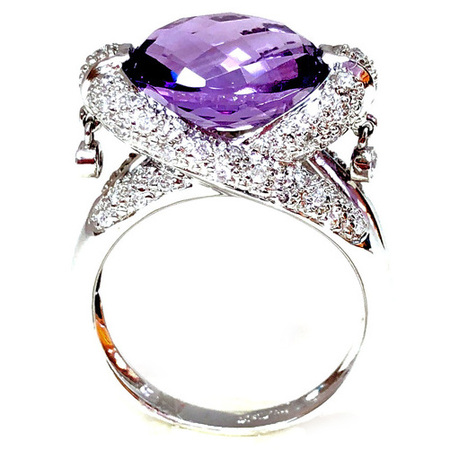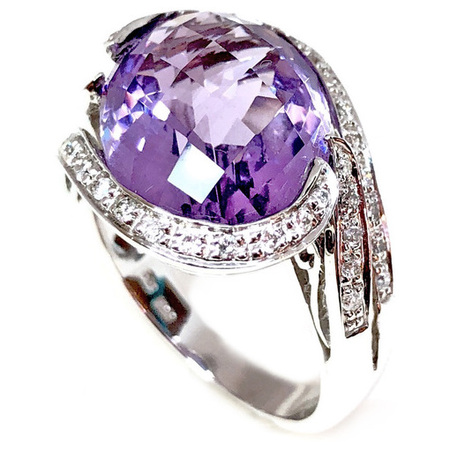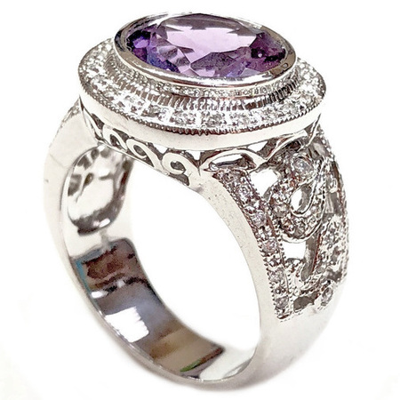 Elegant Design Diamond Ring 14K White Gold, 10.00GR. Ring Size is 6.75 , Width In The Middle Is 14MM & Sides 10MM , 60 Diamonds 0.26CT & Purple Center Stone 1AM 3.50CT , Diamonds Clarity SI1 &It is H Color.