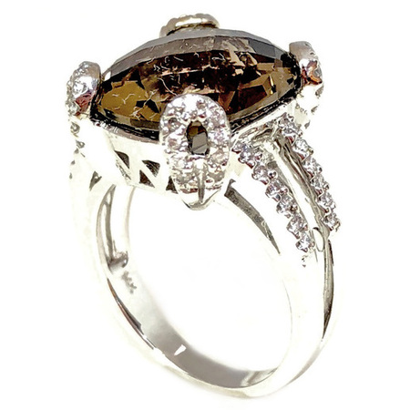 Elegant Design Diamond Ring 14K White Gold , 6.50GR. Ring Size is 6.50 , Width In The Middle Is 16MM & Sides 6MM , 60Diamonds 0.30CT & 1LQ 9.25CT, Diamonds Clarity SI1 & It is H Color