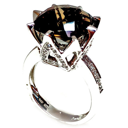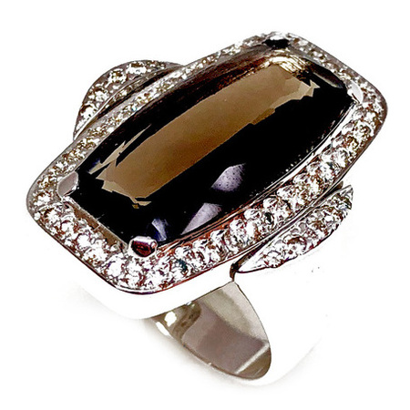 Elegant Design Diamond Ring 14K White Gold , 5.80GR. Ring Size is 6 , Width In The Middle is 17MM & Sides 6MM , 41 Diamonds 0.32CT & 1AM 10.00CT , Diamonds Clarity SI1 &It is H Color