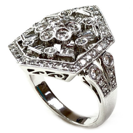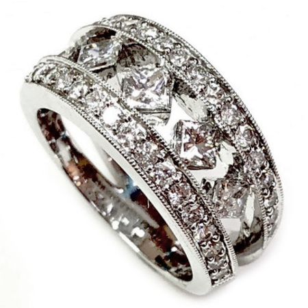 Elegant Design Diamond Ring 14K White Gold , 6.00GR. Ring Size is 6.75 , Width is 6MM , 48 Diamonds 1.52CT , Diamonds Clarity SI1 &It is H Color.
