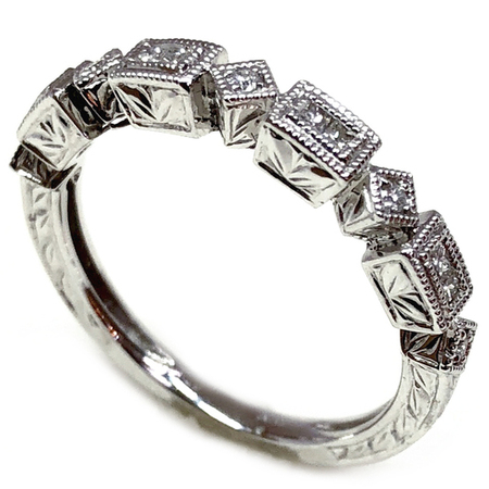Elegant Design Diamond Ring 14K White Gold , 3.10GR. Ring Size is 6.75 , Width is 3MM , 13 Diamonds 0.15CT , Diamonds Clarity SI1 &It is H Color