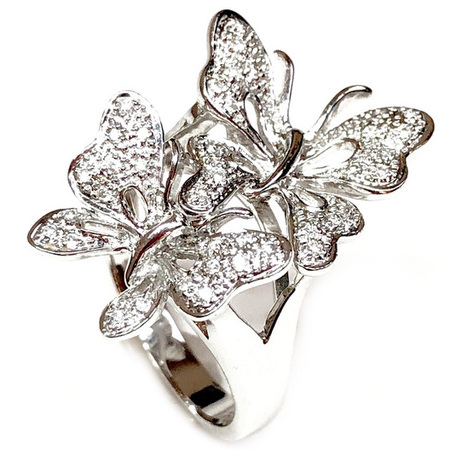 Elegant Butterflies Design Diamond Ring 14K White Gold , 7.00GR. Ring Size is 6.75 , Width In The Middle Is 22MM & Sides 4MM , 44 Diamonds 0.18CT, Diamonds Clarity SI1 &It is H Color.