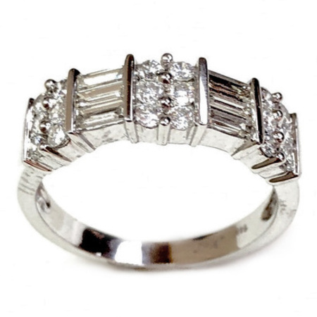 Elegant Design Diamond Ring 14K White Gold , 7.50GR. Ring Size is 6.75 , Width is 6MM , 18 Diamonds 0.47CT 6TB 0.36CT , Diamonds Clarity SI1 &It is H Color.
