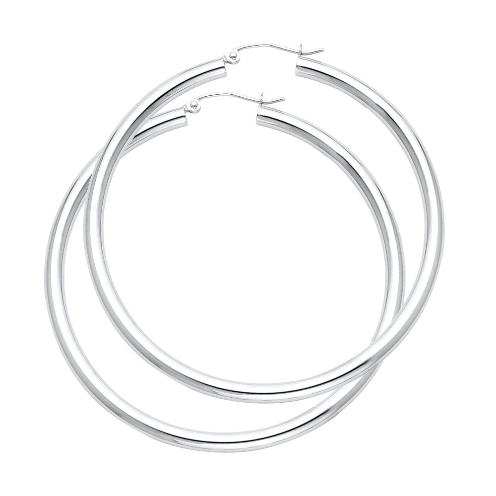 14KW White Gold 3mm Plain Hoop Earring