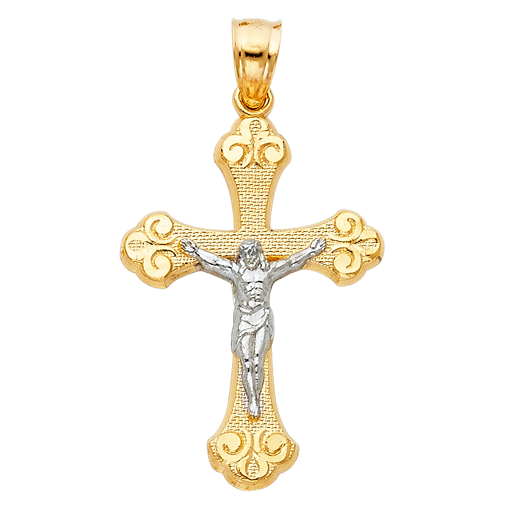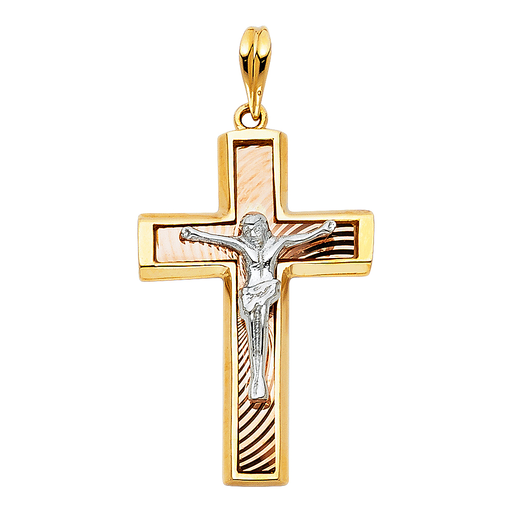 14K 2T Gold 34mm x 17mm Cross Pendant