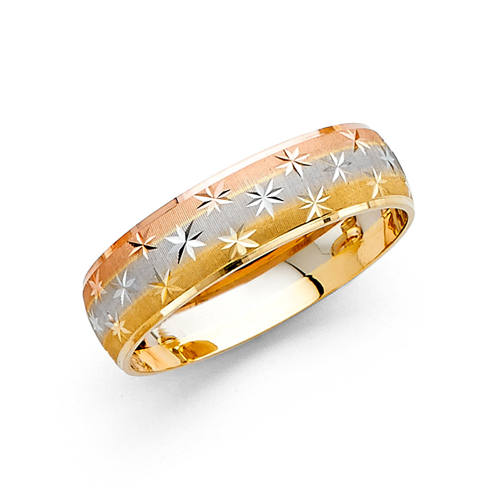 14K 3C Gold Size 10 (6mmx1.0mm) Comfort Fit Fashion Wedding Band