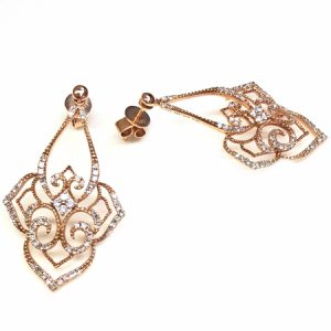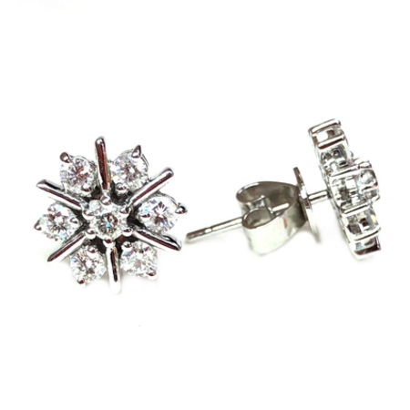 Classy Snow Shape Diamond Earrings on 14K White Gold. 14 Diamonds 0.90CT , 3.60GR. Width 0.50″ By Height 0.50″ , Diamonds Clarity SI1 & It is H Color.