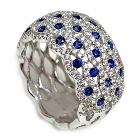 Elegant Design Diamond Ring 18K White Gold , 7.50GR. Ring Size is 6.75 ,  Width Is 11MM , 174 Diamonds 0.83CT & 27BS 0.58CT , Diamonds Clarity SI1 & It is H Color
